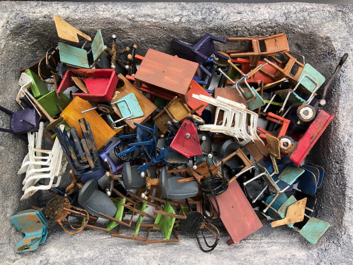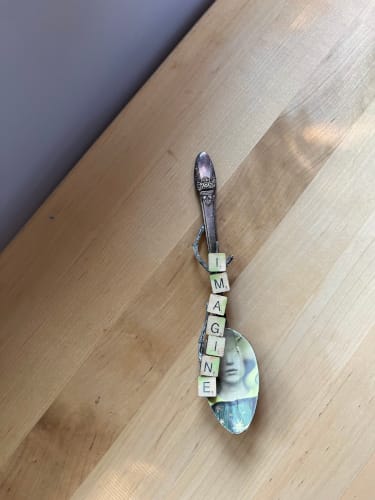 “It’s Not Me, It’s My Haunted Body” is a solo collection and interactive experience. There are 25 pieces made from multiple mediums, including, but not limited to, clay, found objects, wool, resin, Polaroids, and fused glass. Each is focused on an aspect of disability (illness, symptom, experience). Most are small in scale, with the intent of having the visitors get close. It’s my hope they sit with feelings that come up while think about things like brain fog as being able to see thoughts but not be able to access them.
