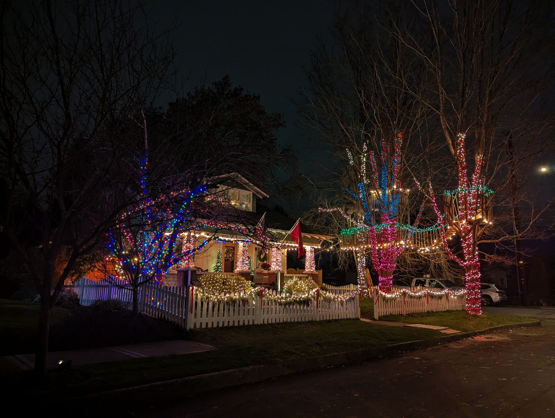 The hubs and I went to see lights on Saturday. Of course there was cocoa, and he made cookies. We’d planned to pop to Silverton Christmas Market, but when we got there, we found out they were all but sold out—no parking passes and bussing people from nearby schools by the hoards. So we opted out. Instead, we enjoyed a few neighborhoods and found the Santas (as is our annual tradition). Despite the two and a half hours on the road with little but highway for eye candy, it was a nice night. The company was lovely, there were laughs and stories and Christmas oldies playing over the radio. Also, we found that there are some places in Vancouver that top Portland for lights that we’ll be investigating more thoroughly next year.