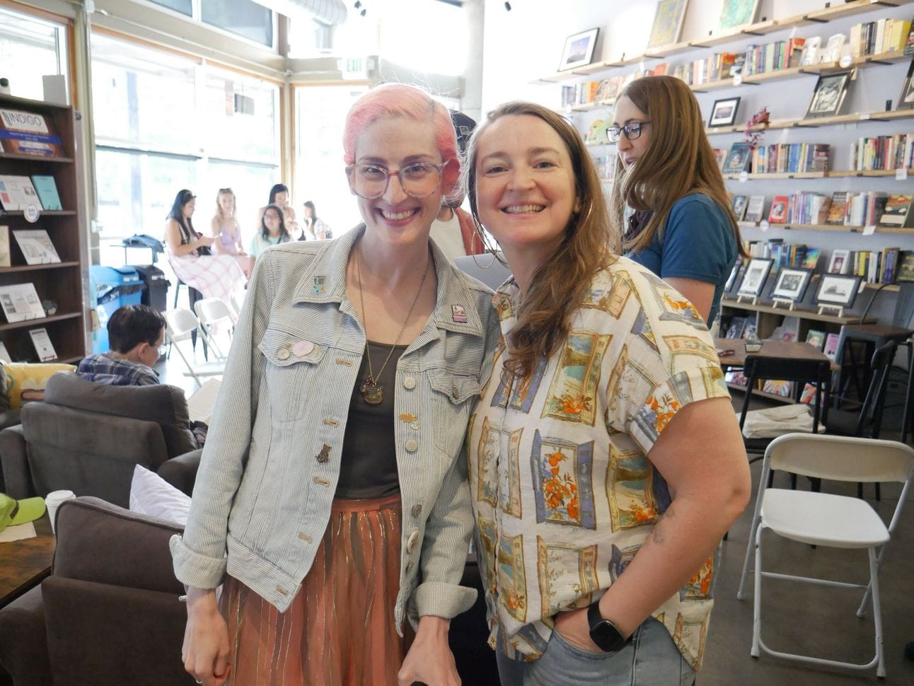 me and Angelique O’Rourke, who also read at the event—this lovely friend and I have been getting together to write or chat since the Before Times / Photographer: Erin Hall