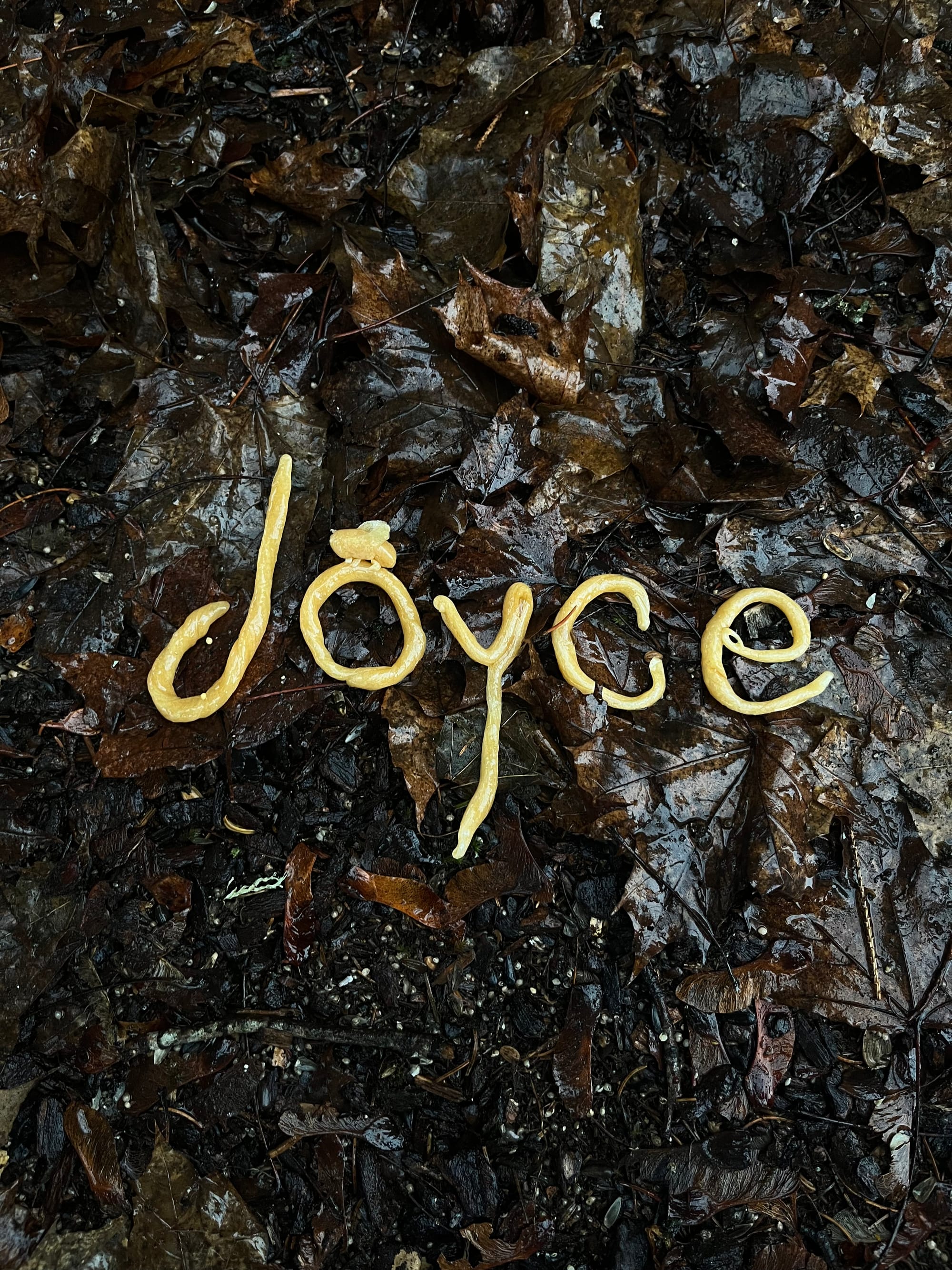From left to right: 1. Rory rolling on the title and a small bee in pulled honey / 2. A glass bee made by Sarah Walker @ Shadowfire Glass (sarahandjoe8@gmail.com) / 3. The pulled honey living its best life out in the woods on a rainy day. Yes, the birds loved it.
